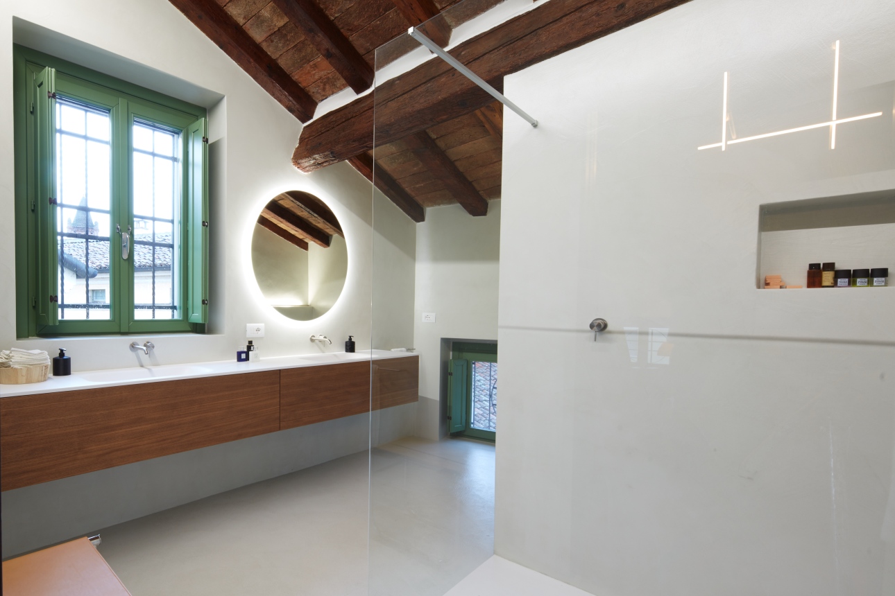 La rivisitazione complessiva dell'edificio ha puntato alla valorizzazione del "contenitore" e del "contenuto", con il ripristino del soffitto ligneo originale con travi a vista e la posa del pavimento in parquet a spina francese e la creazione di atmosfere che grazie a un calibrato gioco di contrasti hanno messo in luce i vari elementi.